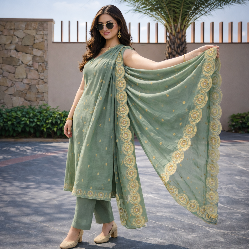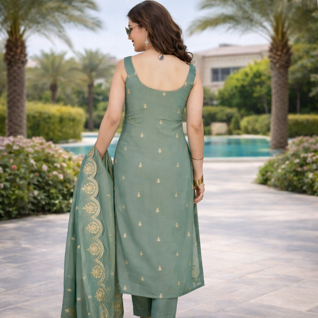 Whether you’re attending a family function, festive celebration, wedding gathering, brunch, or cultural event, this suit ensures you look polished and confident. Style it with minimal jewelry, soft makeup, and traditional footwear for a complete ethnic look 💚